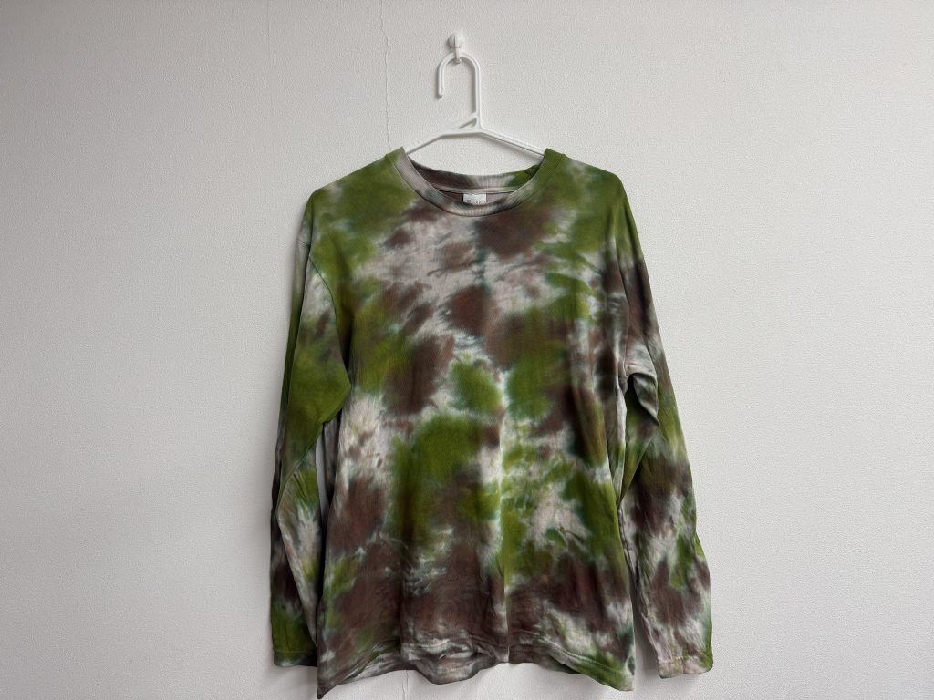 せっかく長袖Tを染めたのにと思い、どうすればいいかと思案した結果、もう一度染色して迷彩柄にすることに決めました。